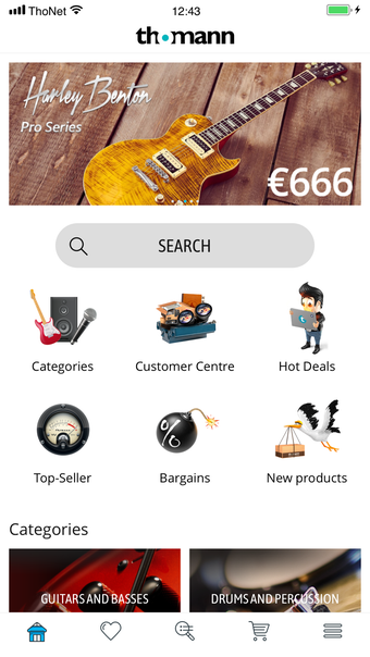 It's all so easy and helpful: Just take your phone and open the Thomann Official app. There are 76,000 products, thousands of helpful videos, and excellent audio samples. You can even create wish lists on your mobile, synced with your online account. That way, you'll never miss the best offers on your favorite items again.